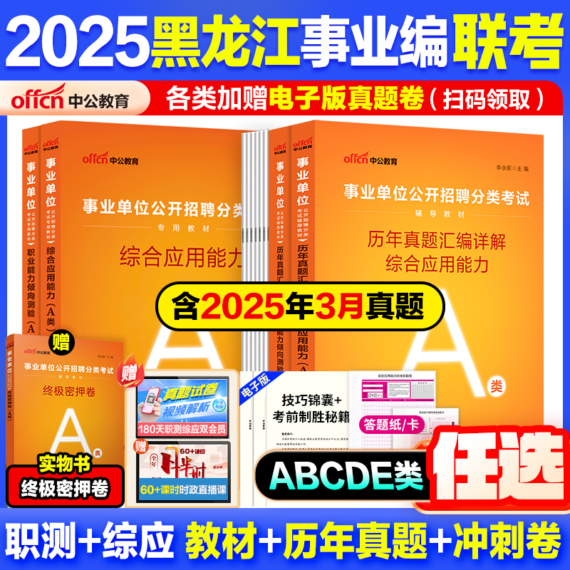 黑龙江事业编真题中公教育2025黑龙江省事业编考试教材资料综合管理a类b类c类中小学d类医疗卫生e类事业单位联考职测综应历年真题