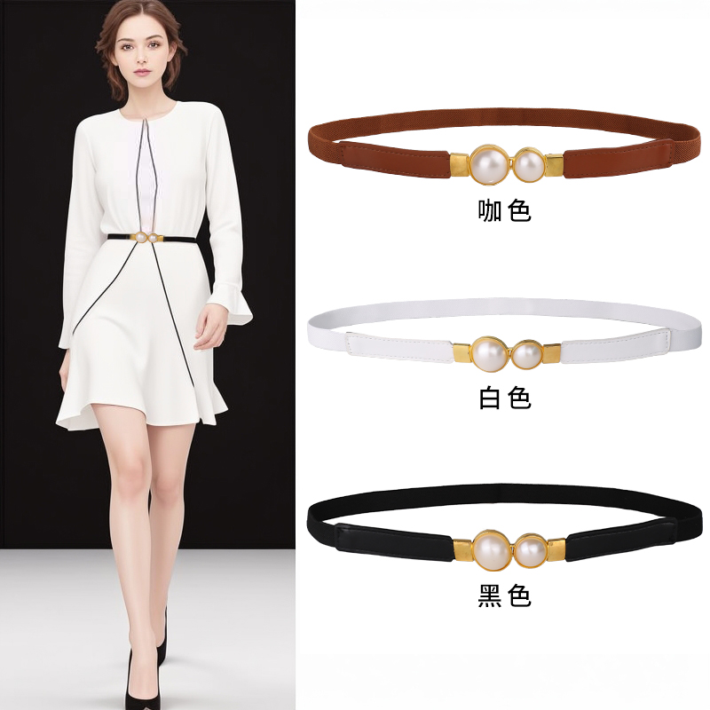 珍珠腰带女2025新款高级感连衣裙牛仔裤收腰神器弹力松紧皮带装饰