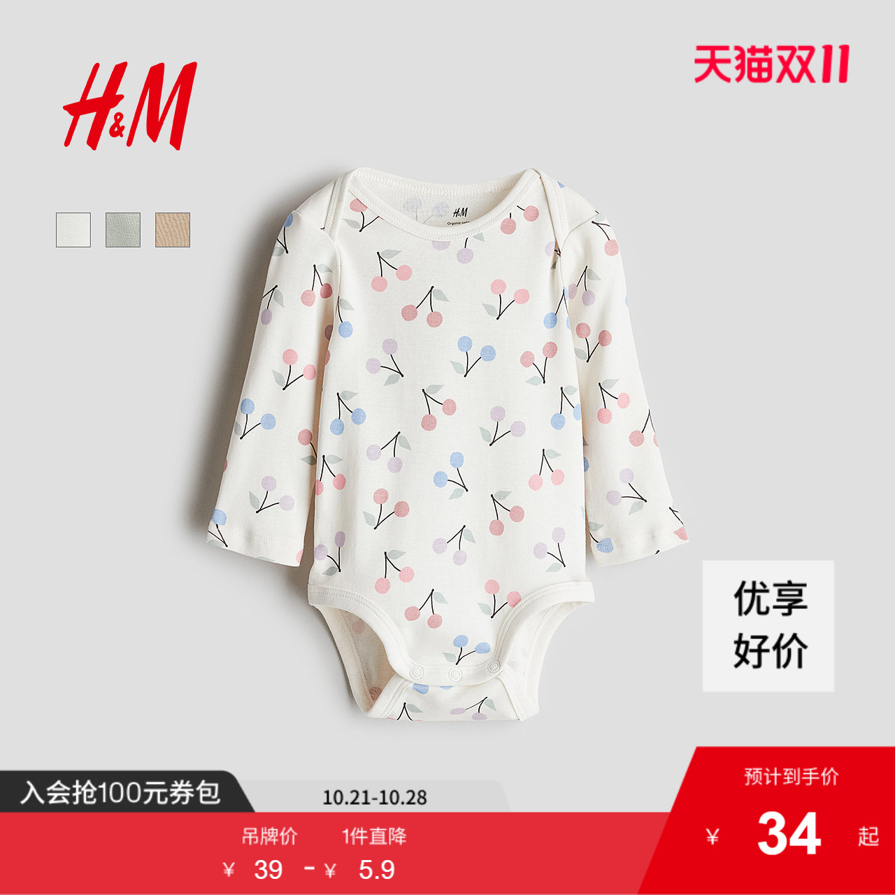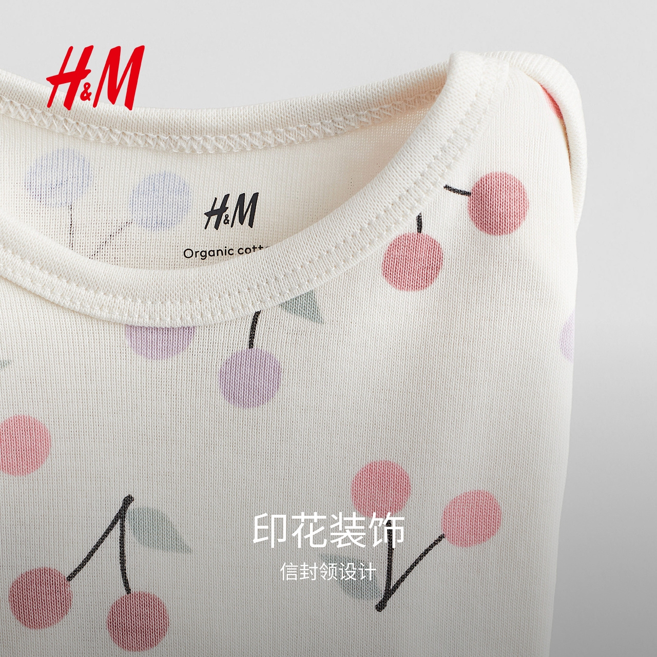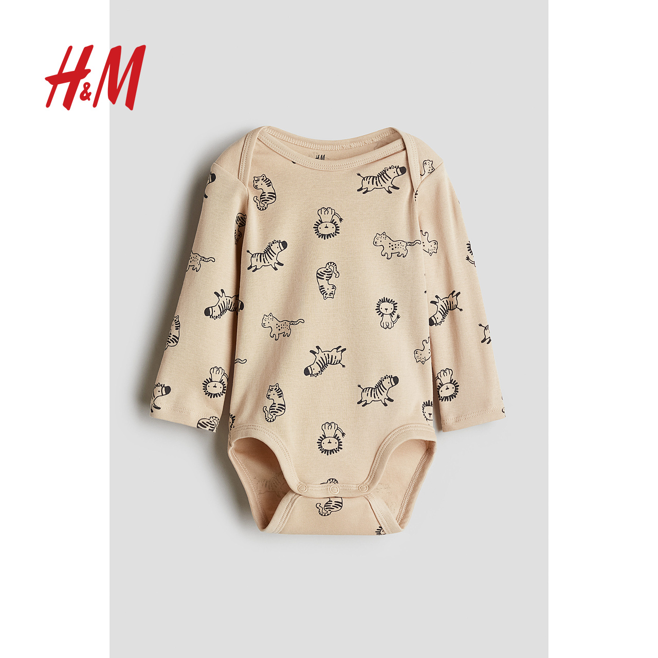 HM童装男婴女婴连身衣秋季薄款婴儿内着印花信封领哈衣1259195