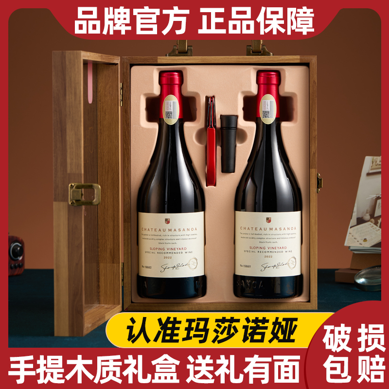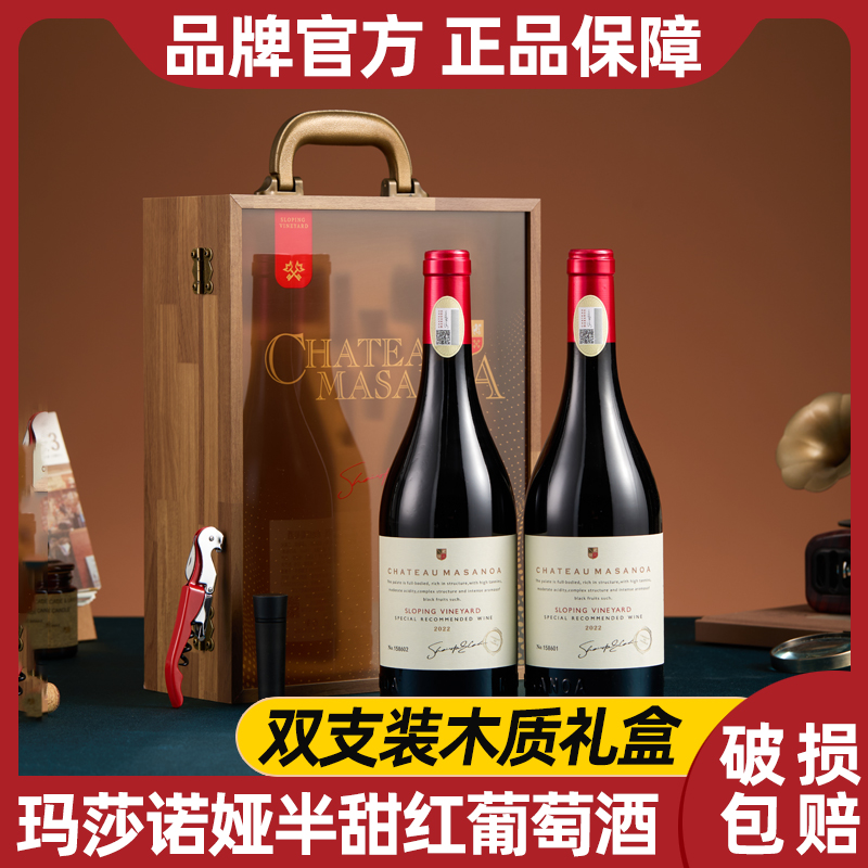 玛莎诺娅坡地红葡萄酒半甜型14度红酒750ml木箱礼盒精选经典双支