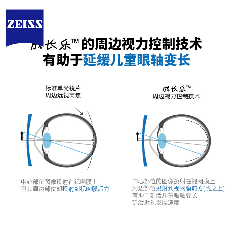 蔡司小乐圆园儿童离焦近视镜片成长乐莲花膜钻立方学生配近视镜