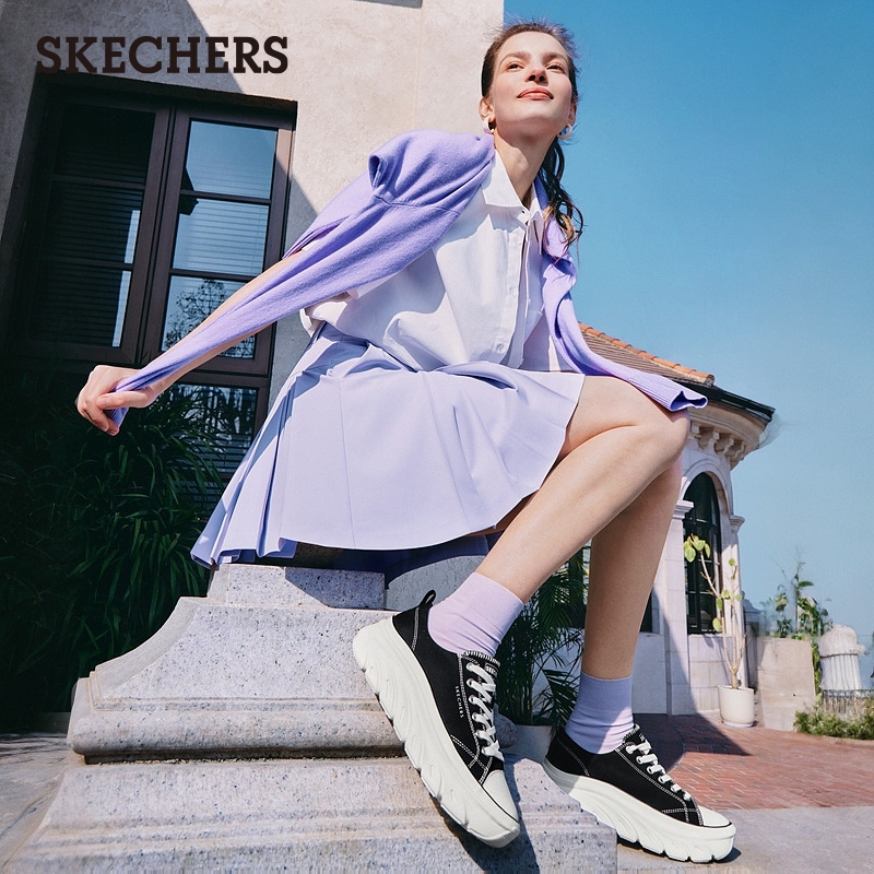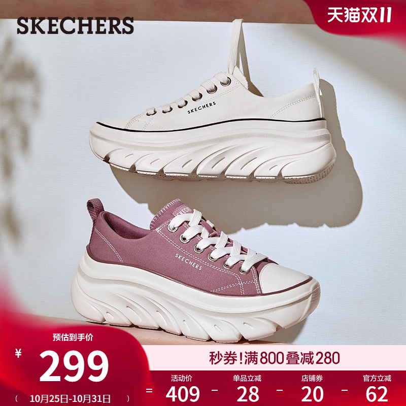 Skechers斯凯奇秋女鞋经典百搭帆布鞋厚底增高休闲鞋软底舒适轻便
