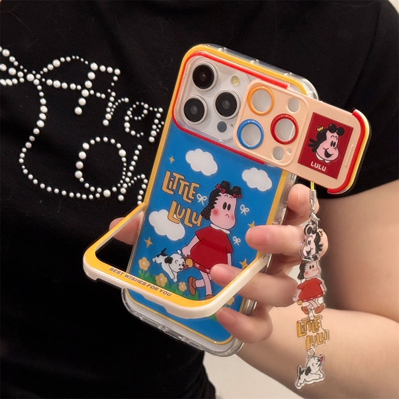 ins趣味可爱推拉大视窗lulu女孩挂件适用iphone16promax手机壳苹果15pro防摔保护套14隐藏支架16镜子15新款