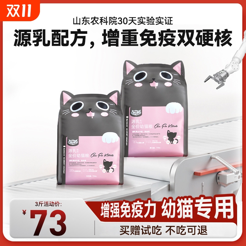 wowo喔喔幼猫粮奶糕猫咪幼猫1到3月专用无谷试吃营养全价肠胃鸡肉