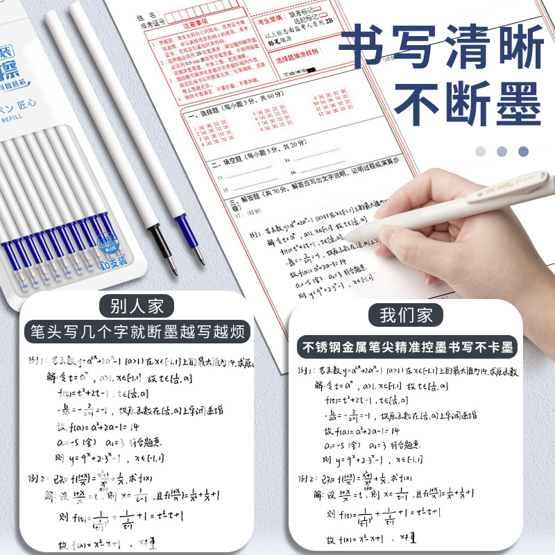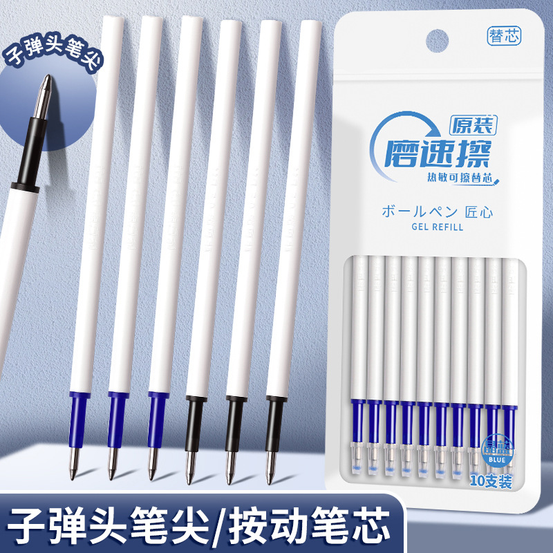 可擦中性笔芯晶蓝色黑色按动热可擦芯小学生0.5mm热敏魔力擦替芯
