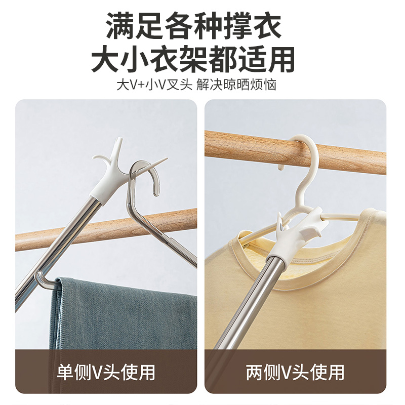 晾衣杆学生宿舍家用不锈钢可伸缩叉丫取晒衣服撑杆挑衣叉杆防滑
