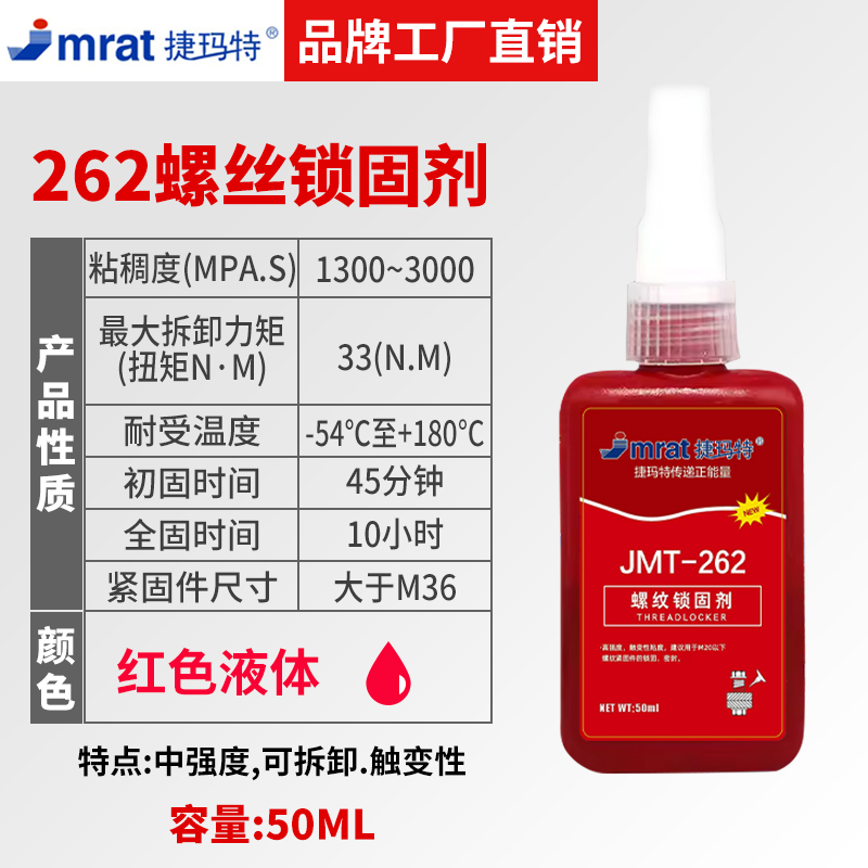 捷玛特螺纹胶防松紧固锁固剂SH-271密封中高强度螺栓镙丝262可拆卸固定222 277 242 271 272螺丝胶厌氧胶水
