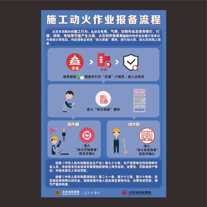 北京施工动火作业消防安全操作规程海报消防安全知识宣传海报消防控制室处置规程消防救援墙贴消防安全常识画
