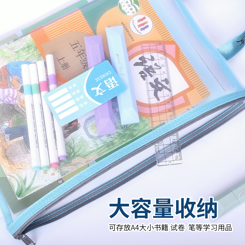 学科科目分类文件袋拉链式双层大容量小学生用资料书本课本分科书袋试卷收纳袋学生装卷子作业袋子A4透明网纱