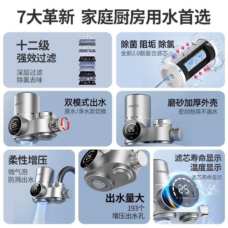 咪呐水龙头过滤器净水器家用直饮厨房自来水前置滤水器通用净化器