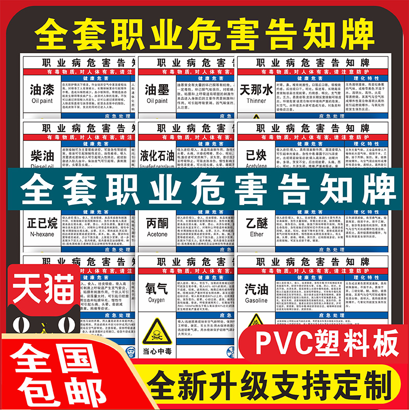 粉尘职业病危害告知牌卡噪声已炔天那水油墨柴油高温有限空间安全作业标识乙酸乙酯岗位风险提示警告标志定制