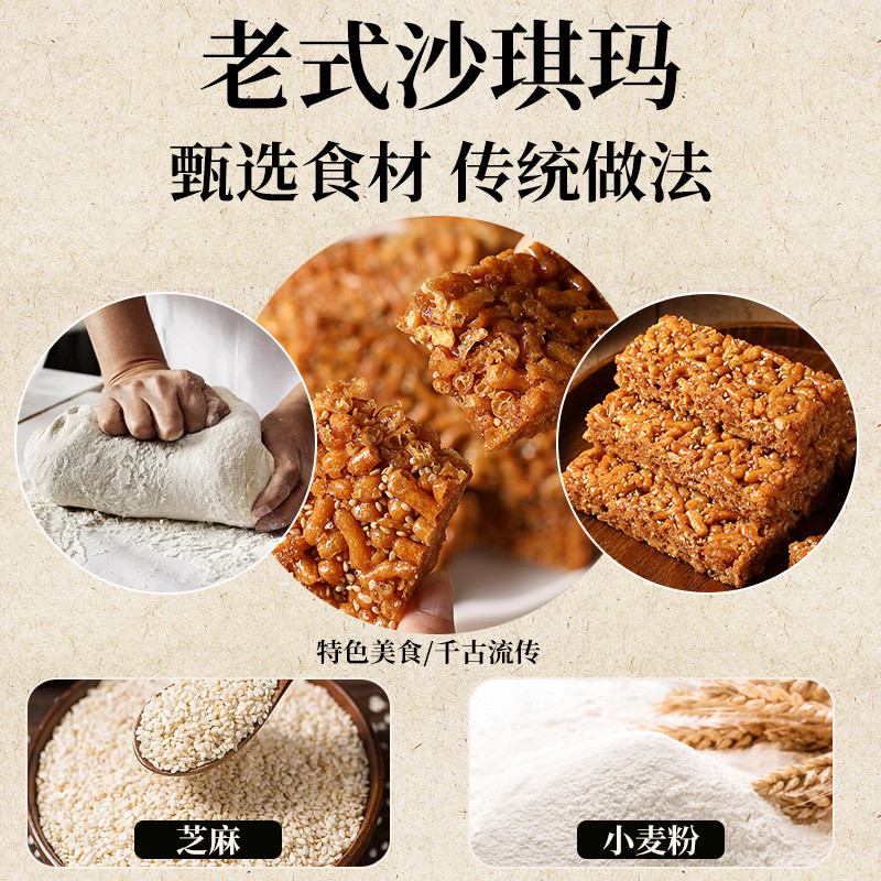 老式沙琪玛香葱琪玛酥萨其马8090后怀旧零食休闲传统糕点小吃食品