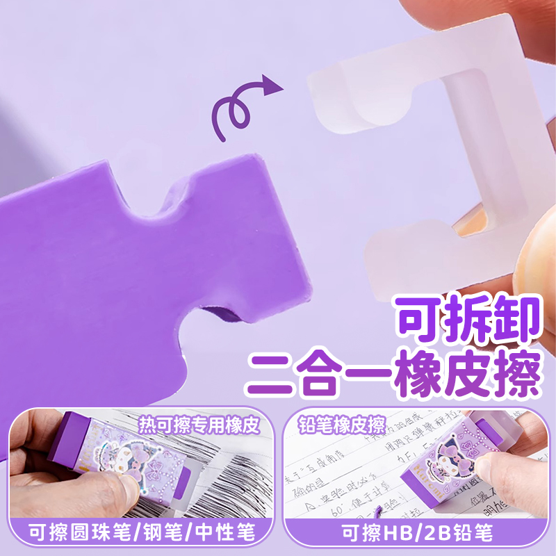 正版库洛米二合一热可擦橡皮热敏魔力擦钢笔可擦中性笔圆珠笔小学生奖励礼品卡通三丽鸥铅笔橡皮擦的干净少屑