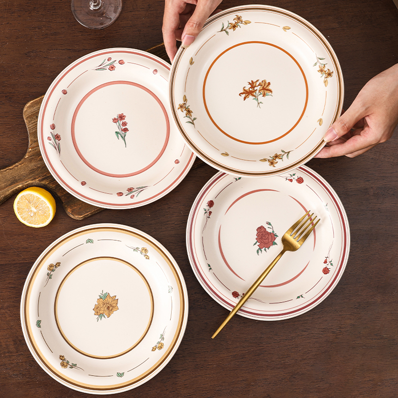 川岛屋法式复古盘子家用菜盘特别好看的高级感餐具西餐甜品早餐盘