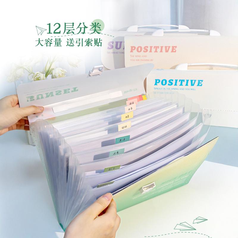 渐变A4手提文件夹多层试卷收纳袋大容量初中生专用手拎式风琴包装卷子科目分类整理神器小学生高中资料收集册