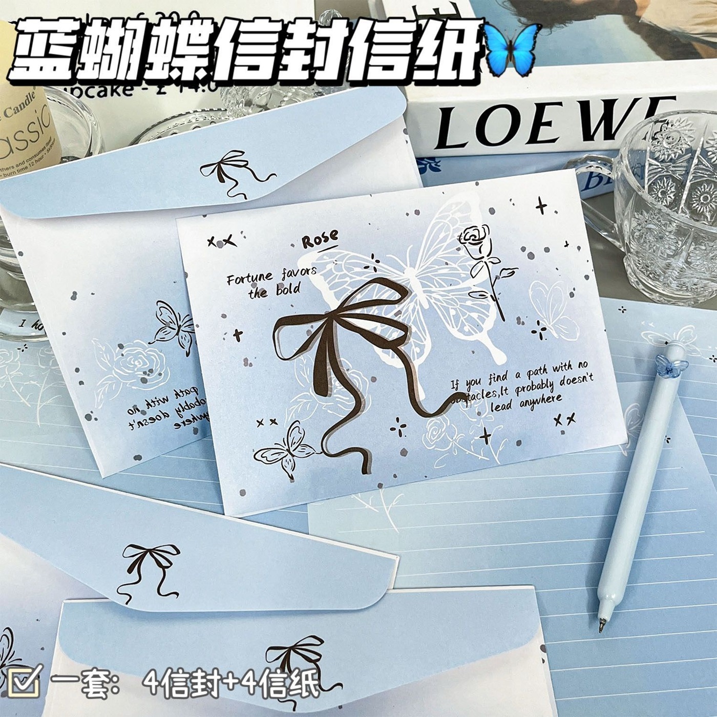 韩系蓝色蝴蝶结信封信纸ins高级感手写书信高颜值节日祝福信笺