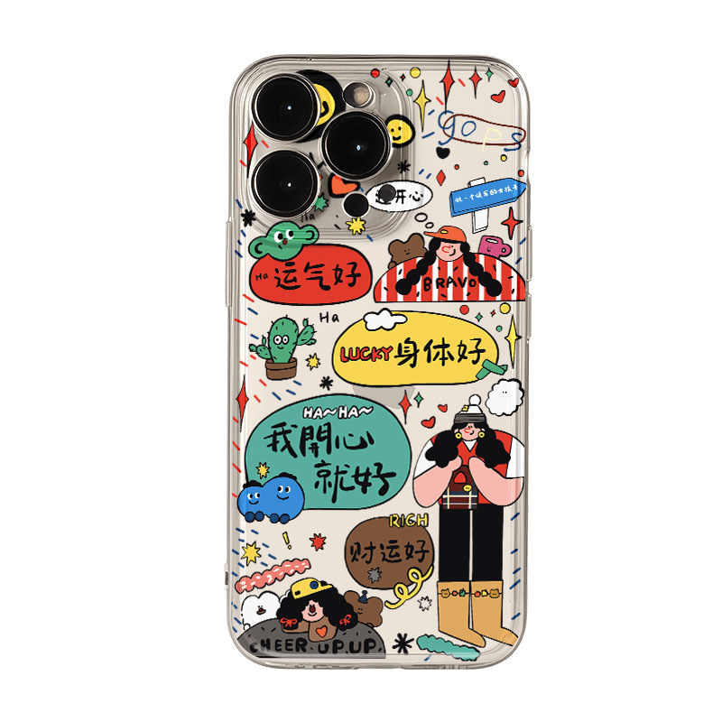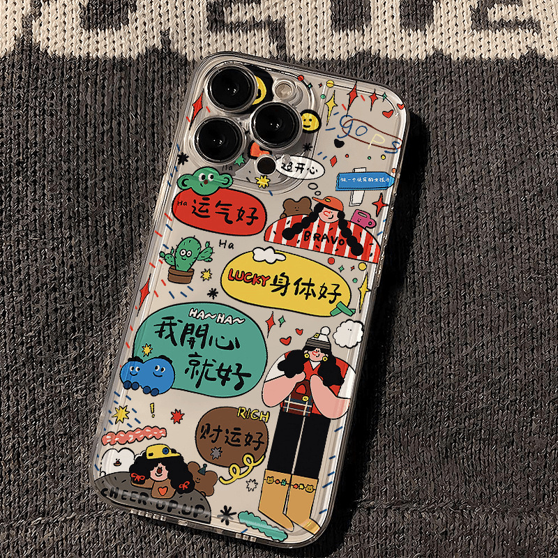 运气好身体好我开心就好个性创意手机壳适用苹果16iphone15promax好运14plus个性13涂鸦新款XR卡通小众上班党