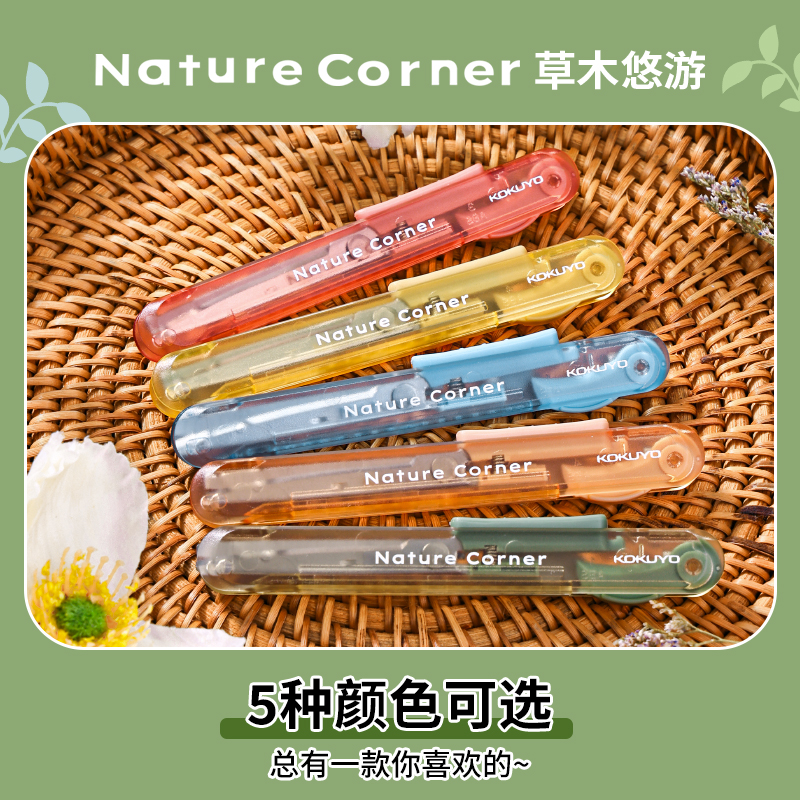 日本KOKUYO国誉NatureCorner草木悠游便携剪刀学生手工制作折叠刀多功能笔形可伸缩小剪子裁剪工具拆快递开箱