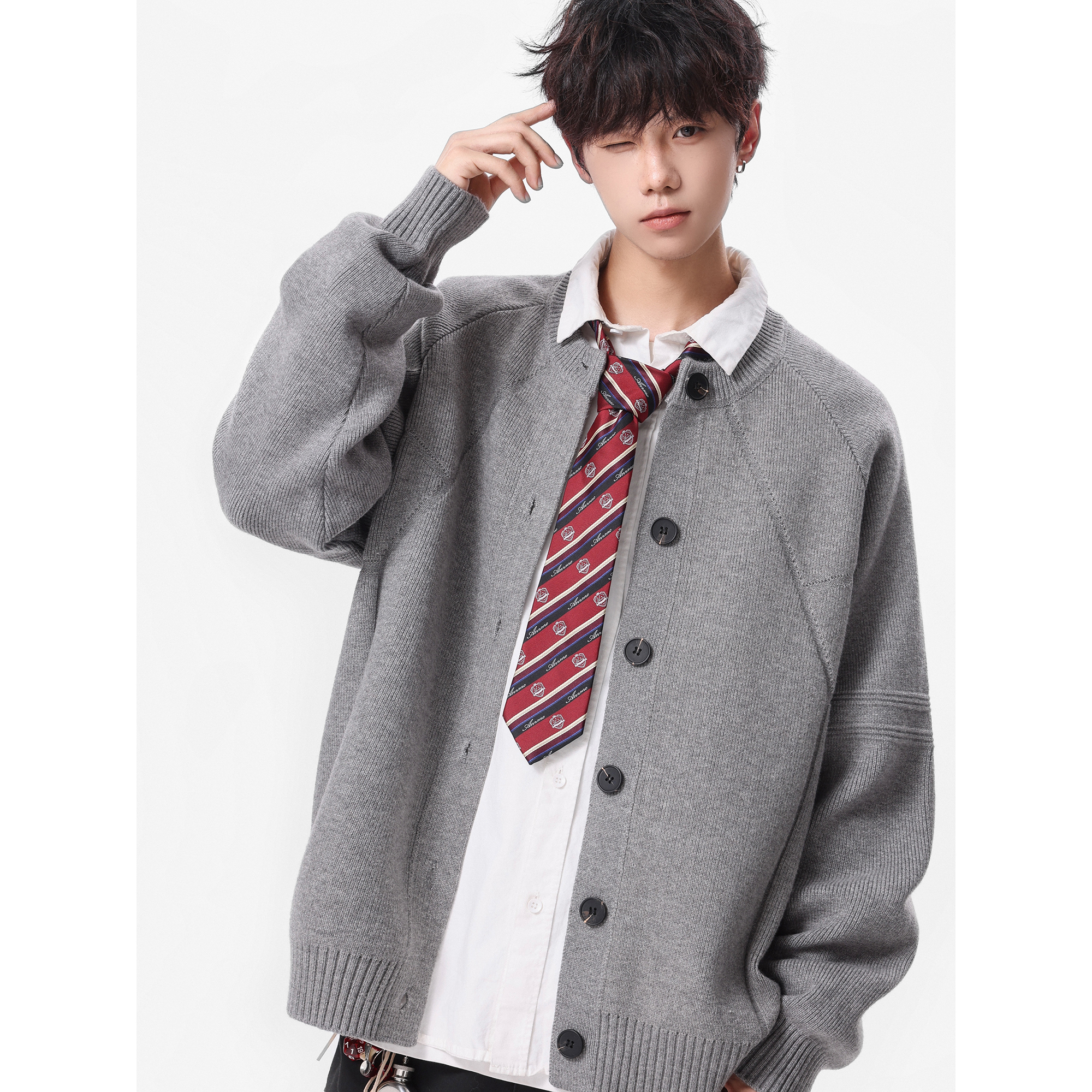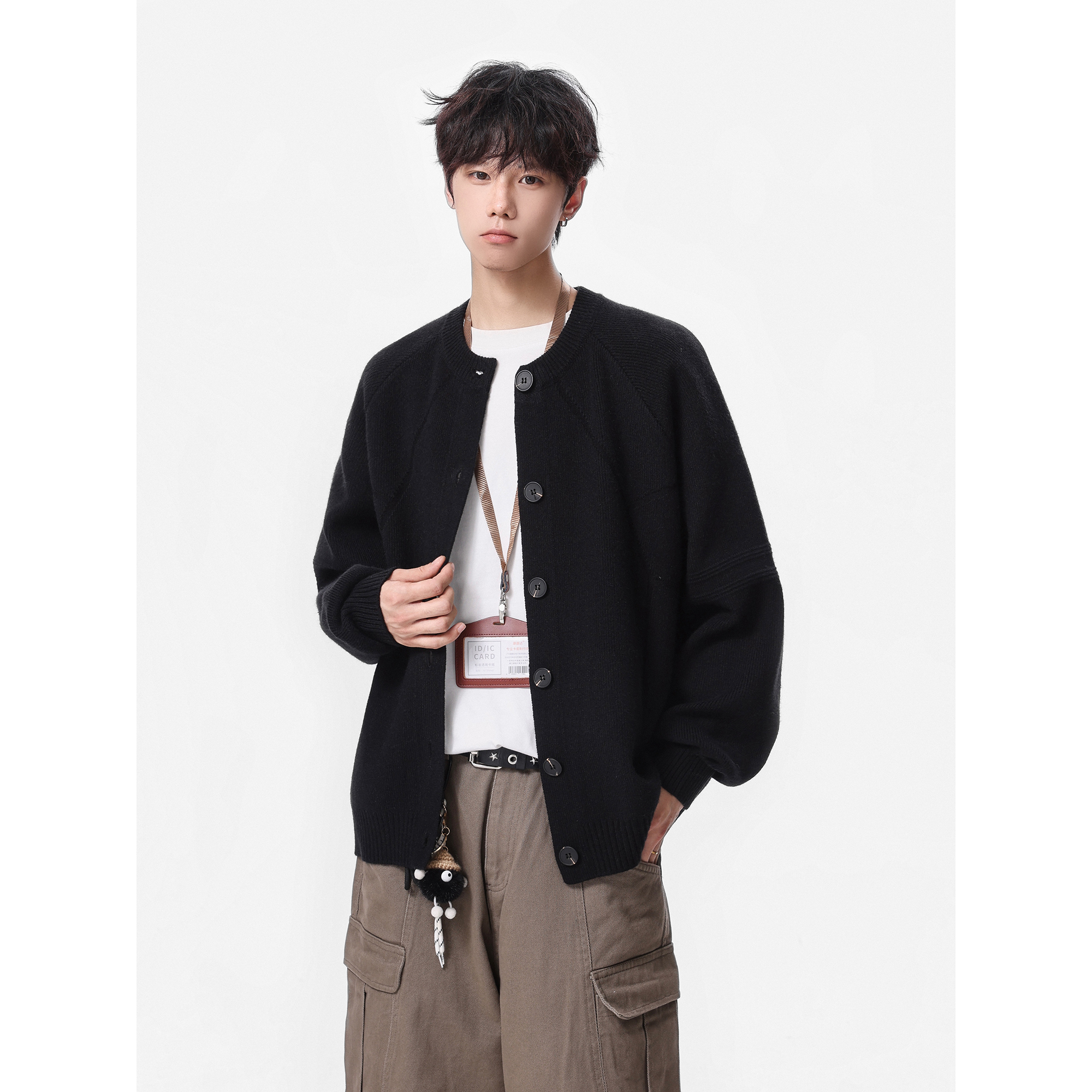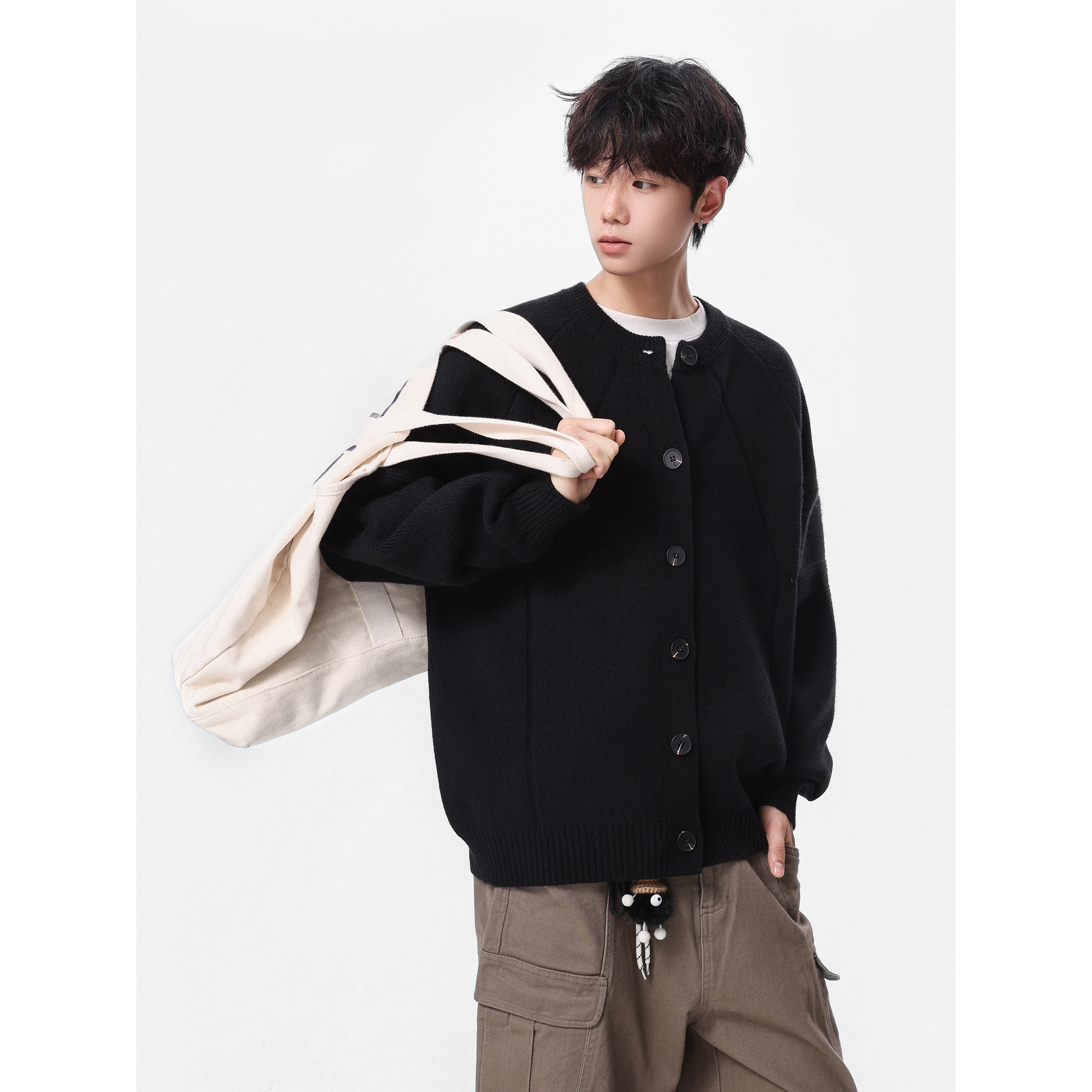 美式纽扣亨利领针织衫男秋冬季潮牌宽松休闲百搭立领毛衣开衫外套
