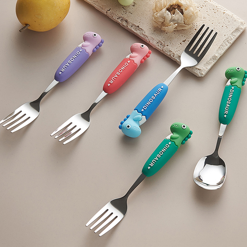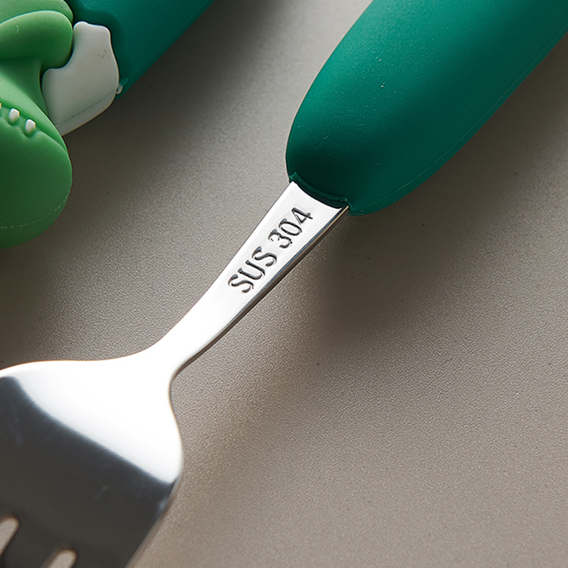 304不锈钢餐勺儿童卡通可爱叉子勺子套装硅胶宝宝家用吃饭勺学生
