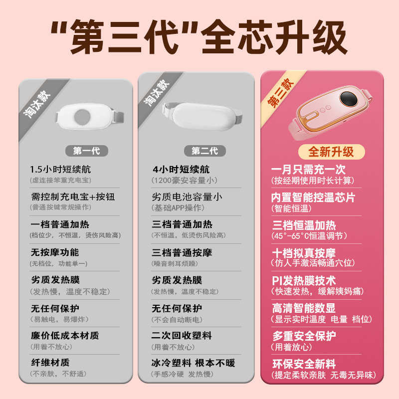 暖宫带充电式女生高颜值暖手宝缓解肚子痛宫寒神器2024年迷你圣诞节小礼物随身携带热敷便携式可穿戴暖宝宝