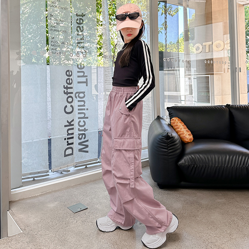 女童工装裤裤子春秋款2025新款中大童女孩早季工装长裤儿童休闲裤