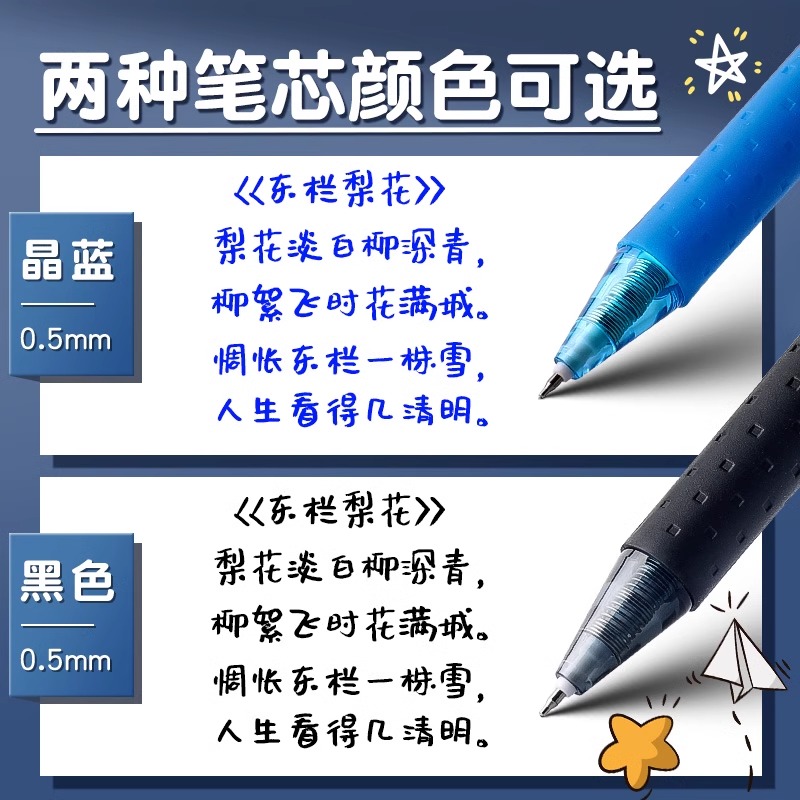 晨光正品热可擦中性笔按动替芯晶蓝黑色笔芯0.5mmST笔头大容量魔力易摩磨擦签字笔小学生专用学习用品文具