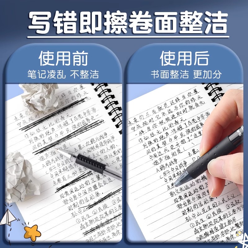 晨光热可擦中性笔按动可擦笔小学生专用三年级晶蓝黑色ST笔头热敏可擦笔男孩女孩易磨摩擦笔魔力擦笔芯替换芯
