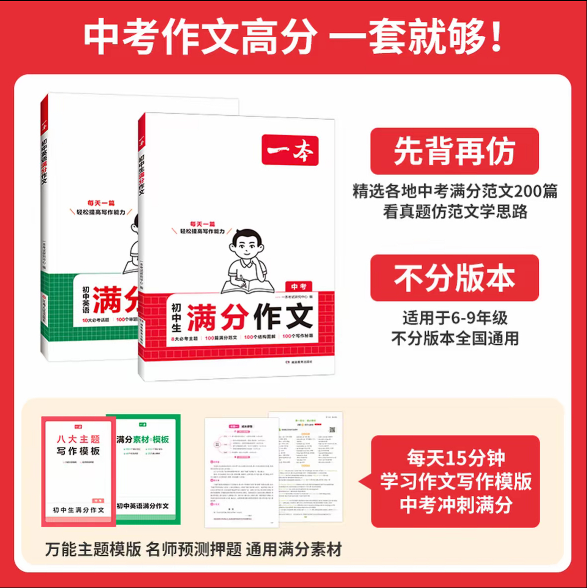 2026版一本初中生满分作文语文英语中考素材大全作文书初一初二初三高分范文精选七八九年级优秀写作技巧模板书周末词汇解读完全