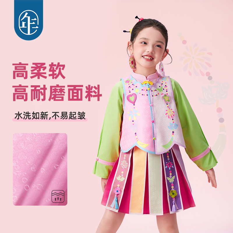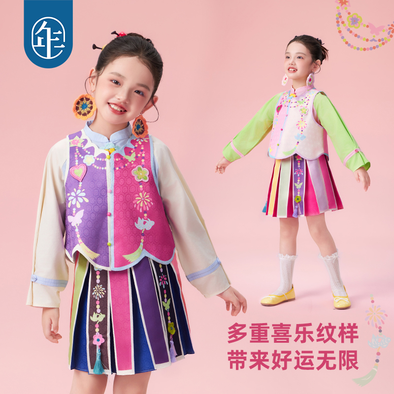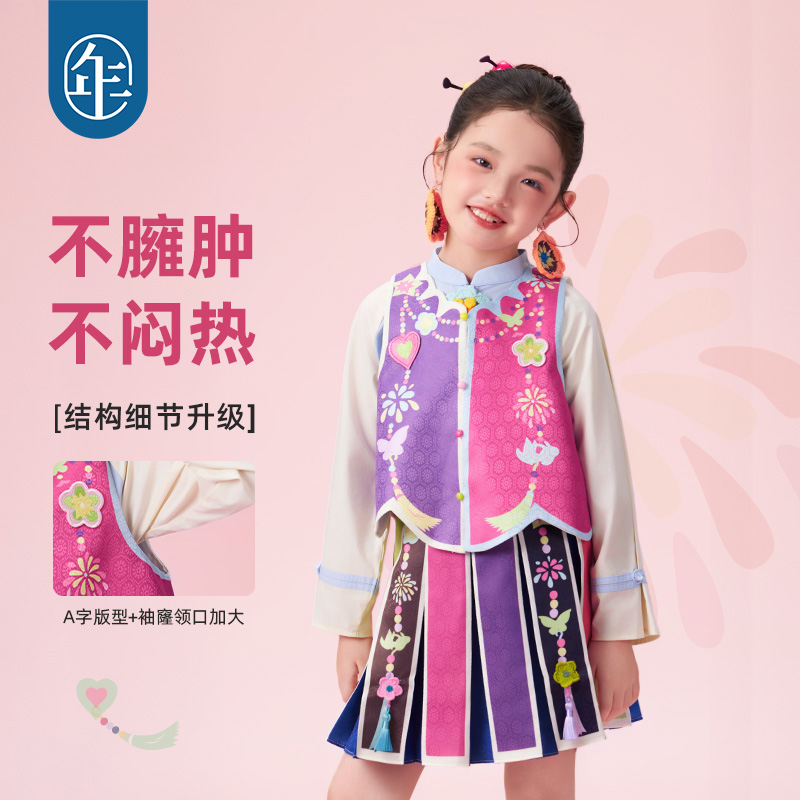 年衣童装女童马甲秋装新款女孩汉服唐装马夹背心上衣半身裙套装