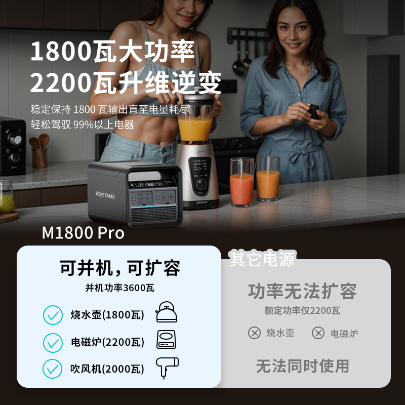 移族M1800Pro户外移动电源升维2200W大功率220V便携大容量1.5度电半固态电池应急救援停车载电源自驾游露营