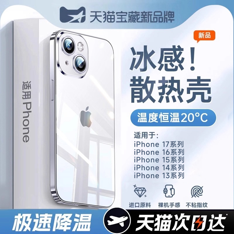 冰感散热]品胜适用苹果17promax手机壳新款iPhone16pro超薄防摔15pm透明14保护套13全包软12plus磁吸高级感女