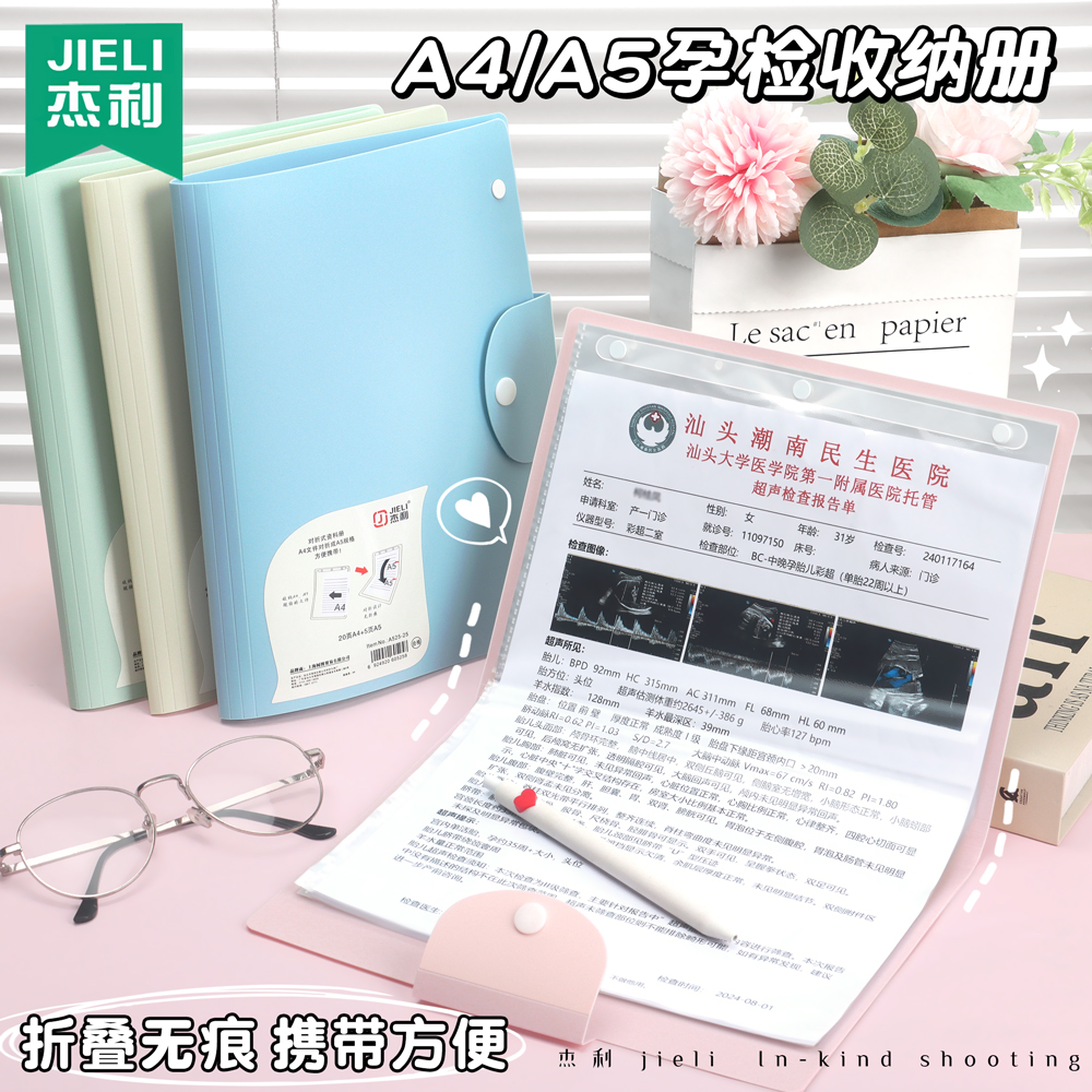 杰利孕检收纳册a4孕检收纳袋资料册插页a5文件夹无痕折叠孕期档案册孕妇b超彩超检查单病例怀孕报告单定制