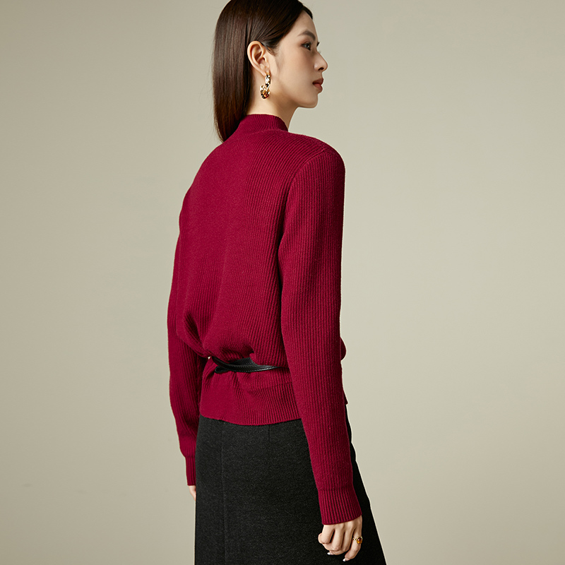 晚白2025年冬新款时尚新中式毛衣纯色加绒针织衫女【不含腰带】