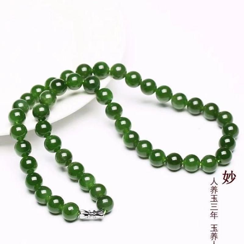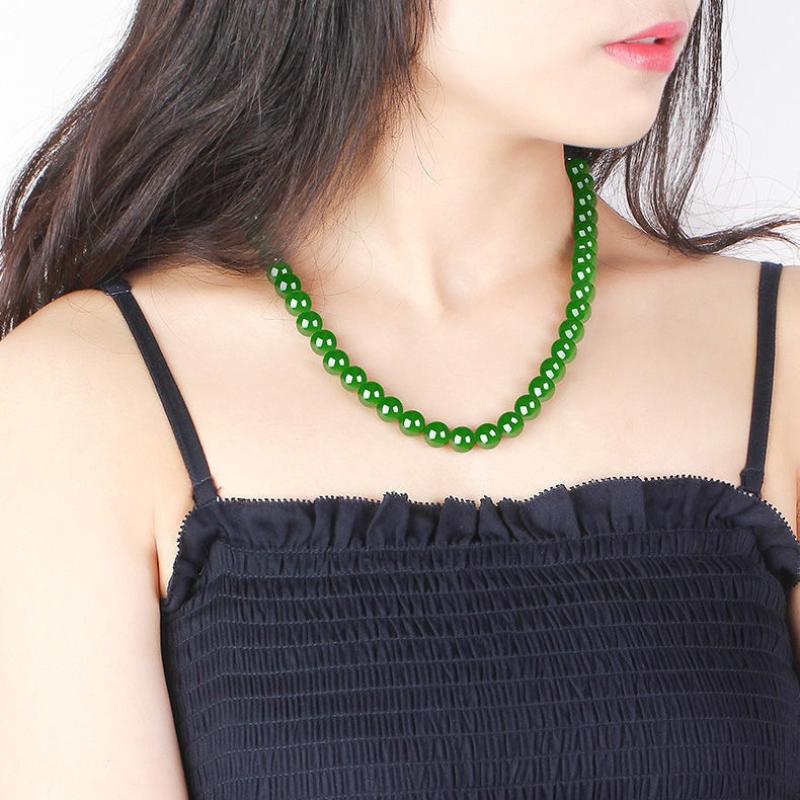 碧绿玉色项链女士手链女款高档圆珠菠菜绿手串简约礼物送妈妈碧玉
