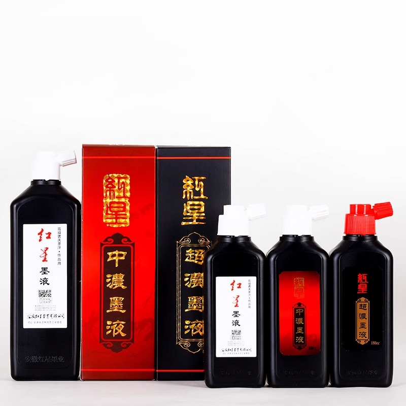 正品红星墨汁450ml正品油烟墨水大容量毛笔练习大瓶批发国画初学者墨香中浓超浓书画书法专用玄宗墨液整箱装