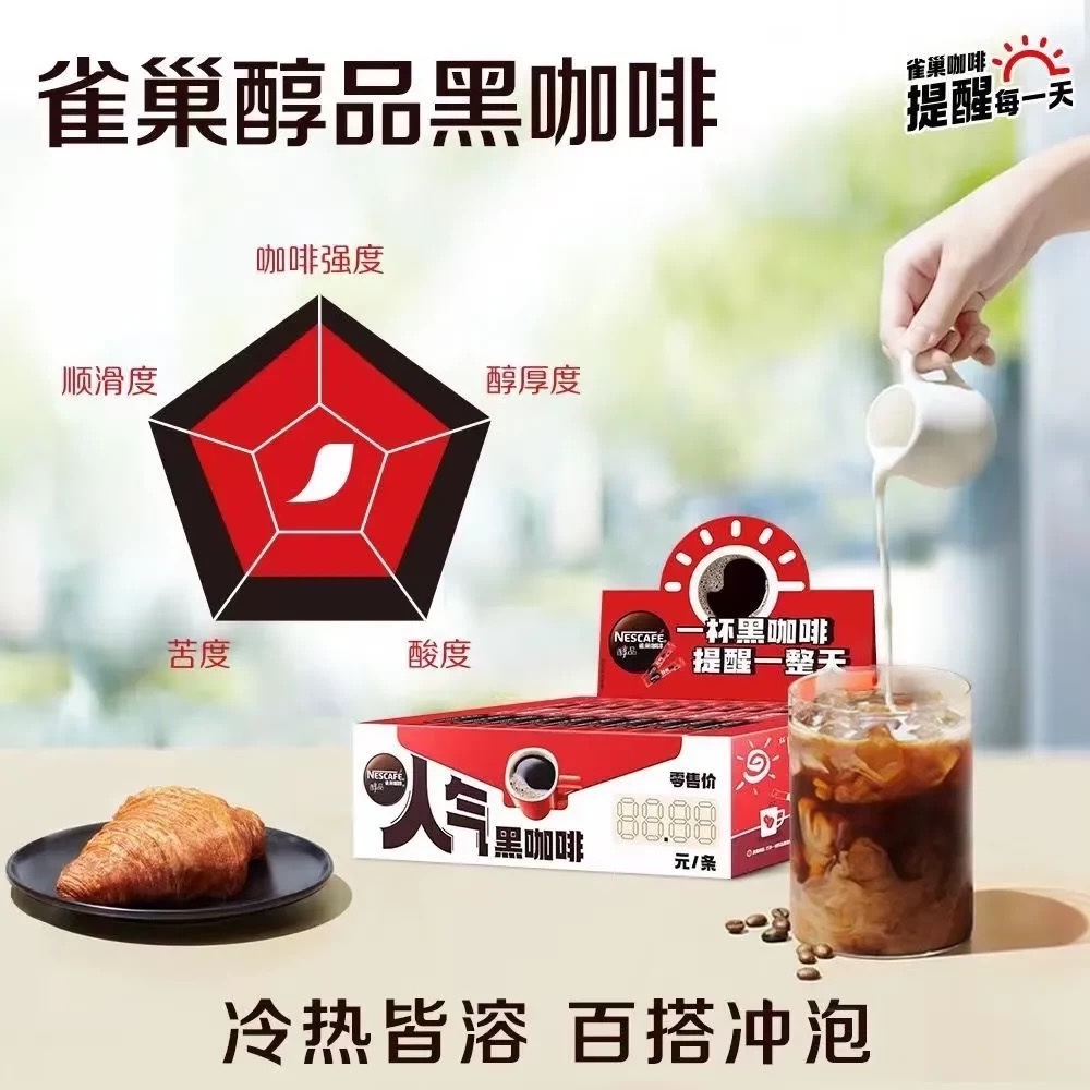 雀巢黑咖啡醇品袋装深烘深黑可调冰美式速溶咖啡粉健身提神苦咖啡