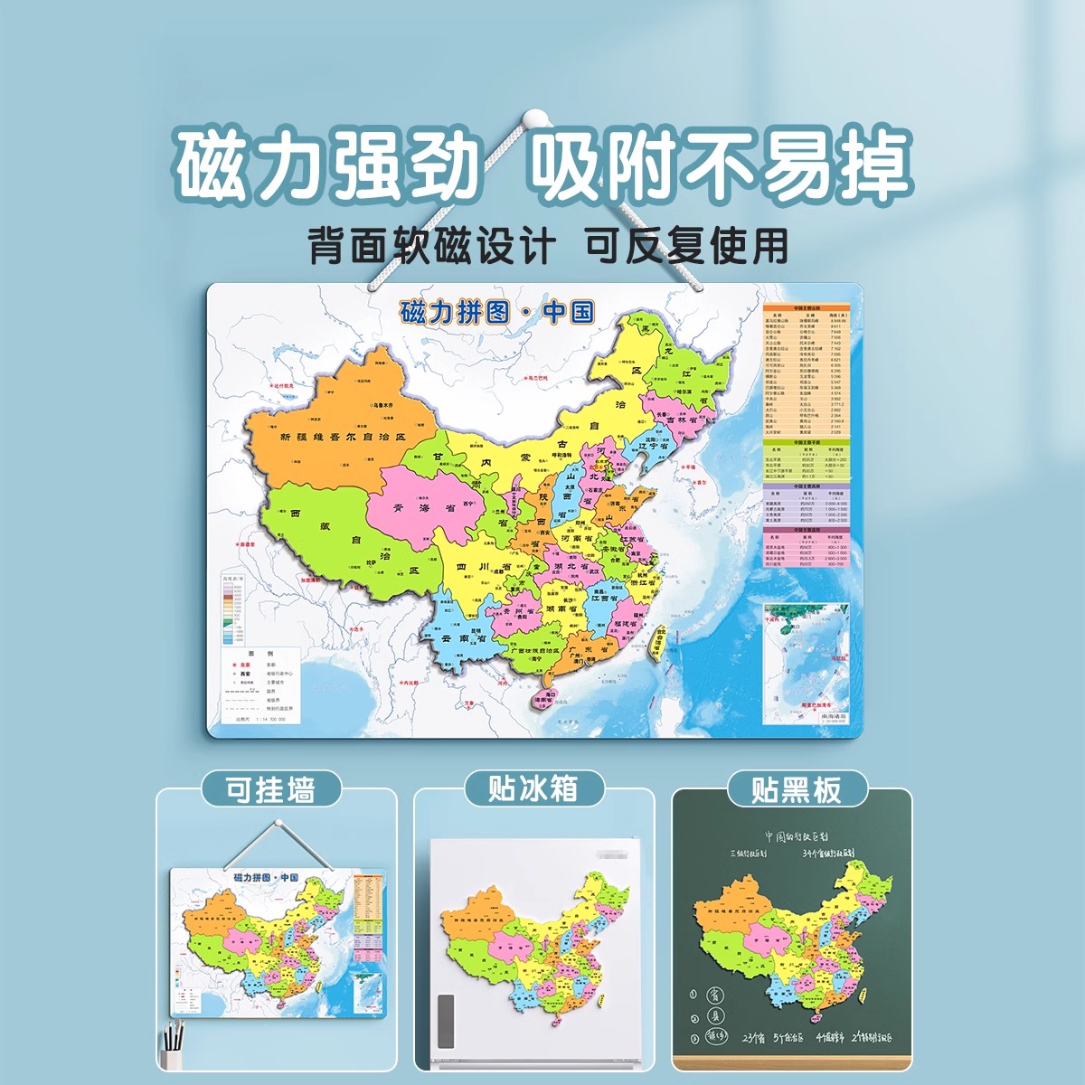磁力中国地图世界拼图初中生专用行政区划儿童6岁以上8益智玩具12