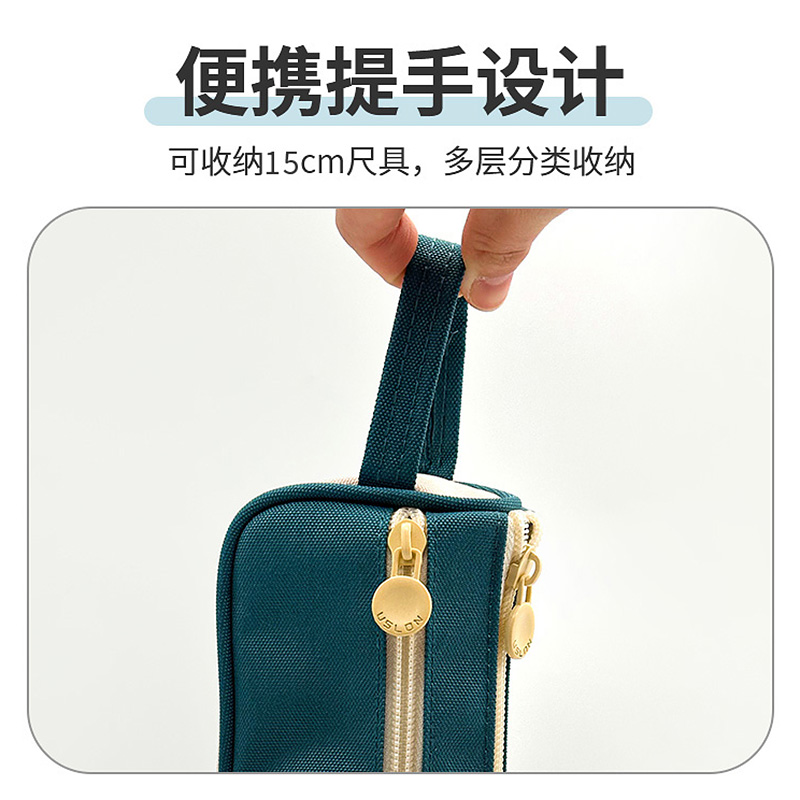 USLON尤斯隆笔袋若盐大容量文具袋铅笔盒收纳包布质手提耐磨可爱温柔小清新风格拉链笔袋帆布耐用可手提