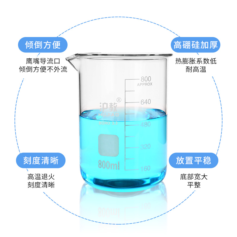 沪教牌高硼硅玻璃烧杯 带刻度量杯初中物理化学生物实验 耐高温耐热刻度杯加厚小学科学教学仪器大号中号小号