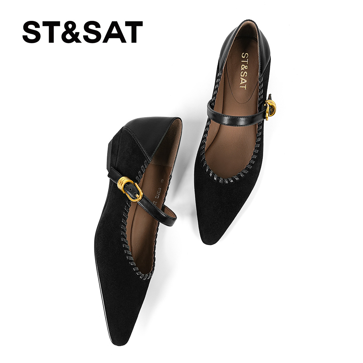 星期六法式玛丽珍鞋女2025尖头一字扣平底单鞋软底浅口通勤工作鞋