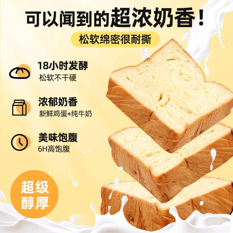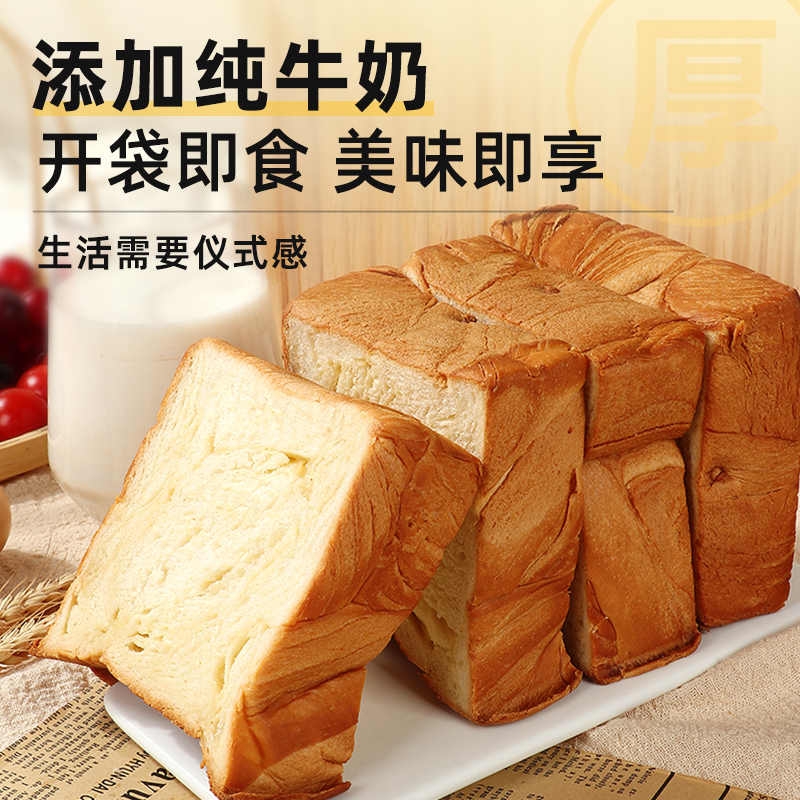 厚切吐司面包早餐切片整箱牛乳手撕学生营养代餐夜宵充饥饱腹零食
