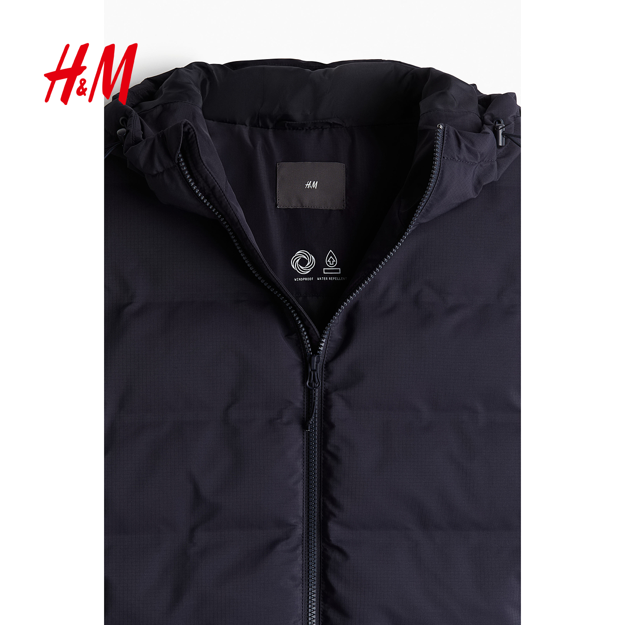 HM男装棉衣冬季标立领拉链连帽防风疏水长袖棉服1225634