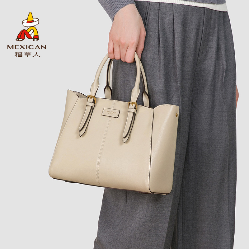 稻草人包包女士新款夏季牛皮高级感百搭手提包小众真皮单肩斜挎包