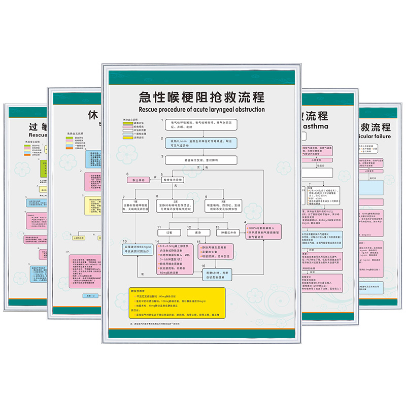 医院急救步骤挂图过敏性休克反应抢救流程图医院诊所急诊急性病症处理流程图急诊室科室卫生室管理制度提示牌
