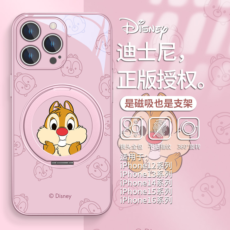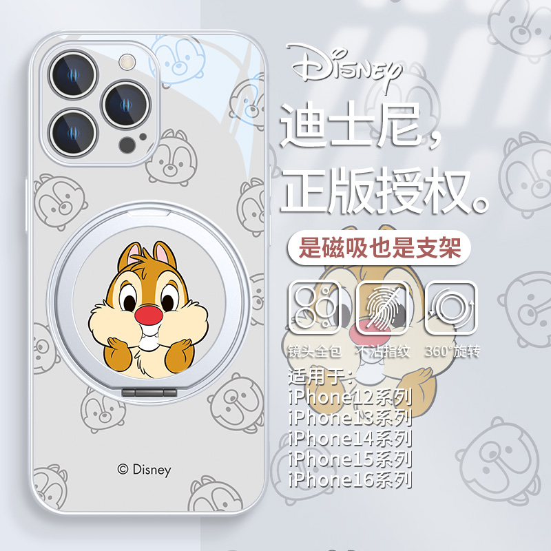 适用迪士尼iPhone16promax情侣手机壳磁吸magsafe苹果15plus奇奇蒂蒂14pro支点壳13带指环支架12保护套小米15