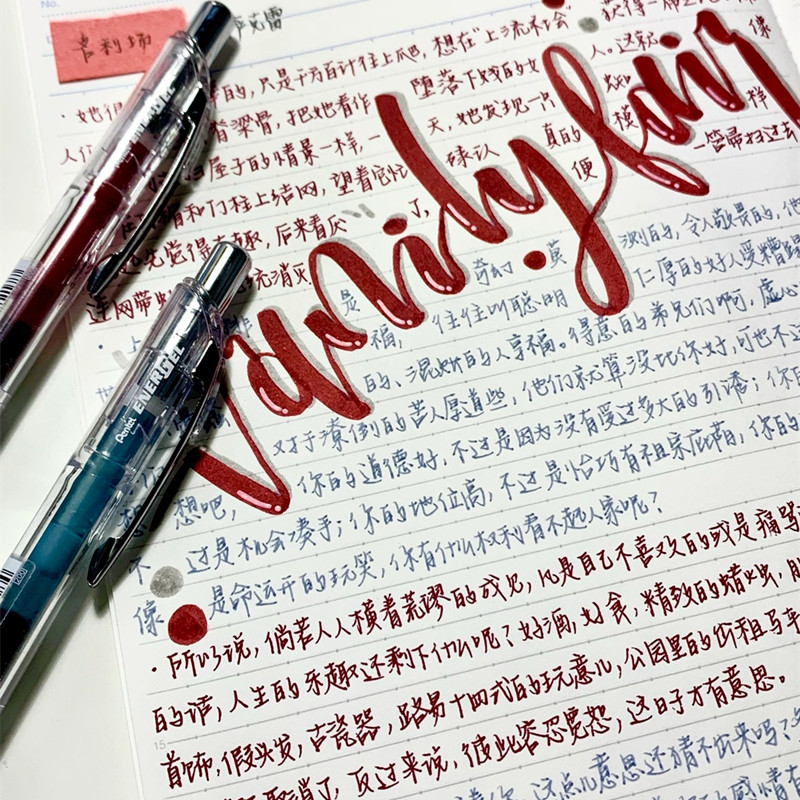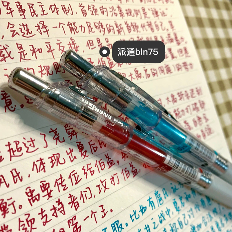 日本Pentel派通中性笔BLN75TL速干中性笔0.5大容量按动式办公签字笔学生专用透明杆勃艮第红手账松石绿Pental