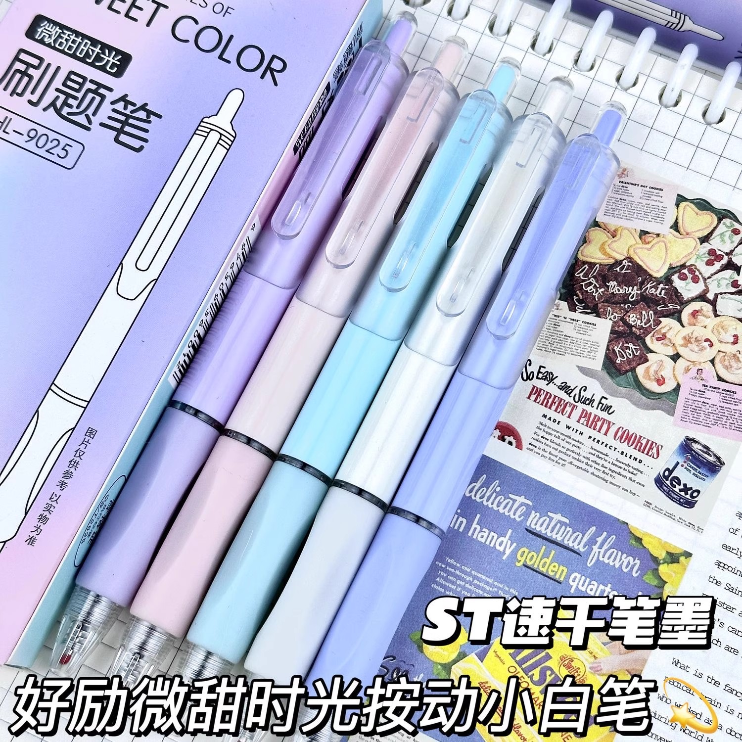 ST刷题笔高颜值按动中性笔圆珠笔黑色水笔小学生专用考试0.5速干碳素笔水性黑笔按压式做笔记签字笔非按斤卖