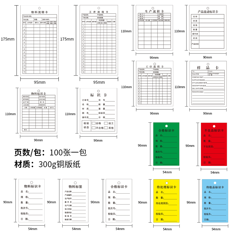 物料标识卡仓库物料卡物资卡产品不合格生产工序流程卡流转卡定制