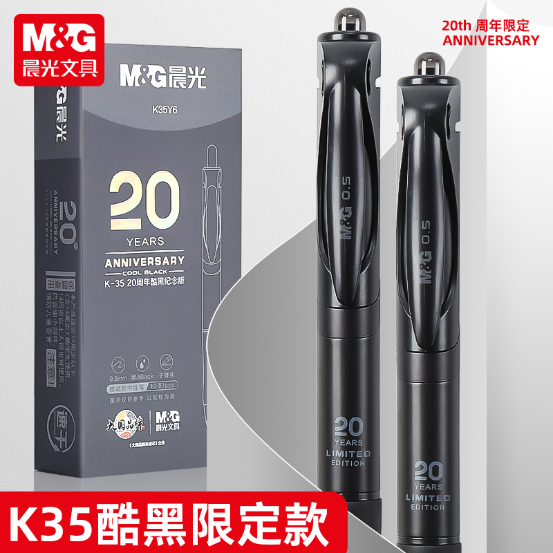 晨光K35酷黑按动中性笔20周年酷黑纪念版学生专用考试0.5速干碳素黑色办公按压水笔圆珠笔网红刷题笔学习用品